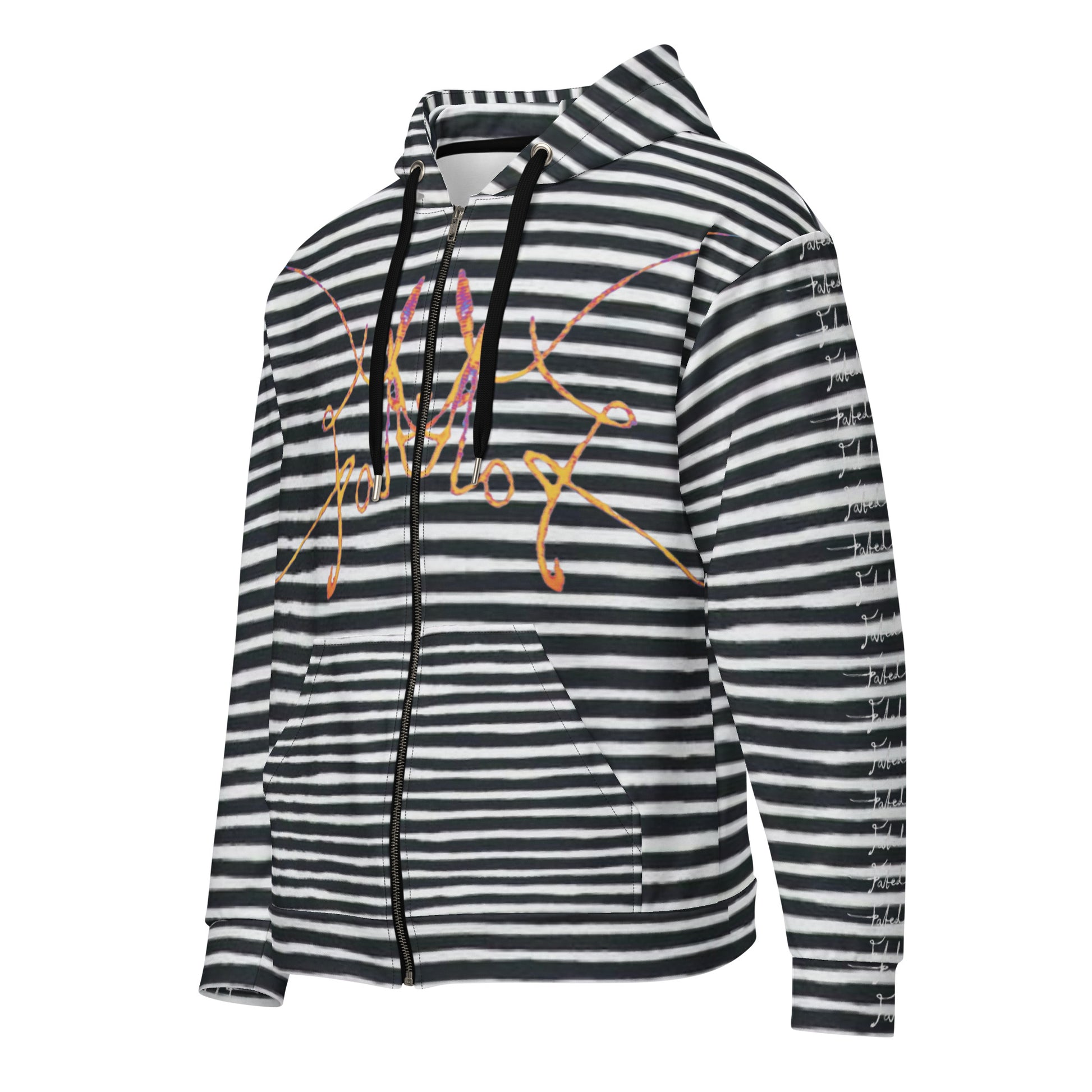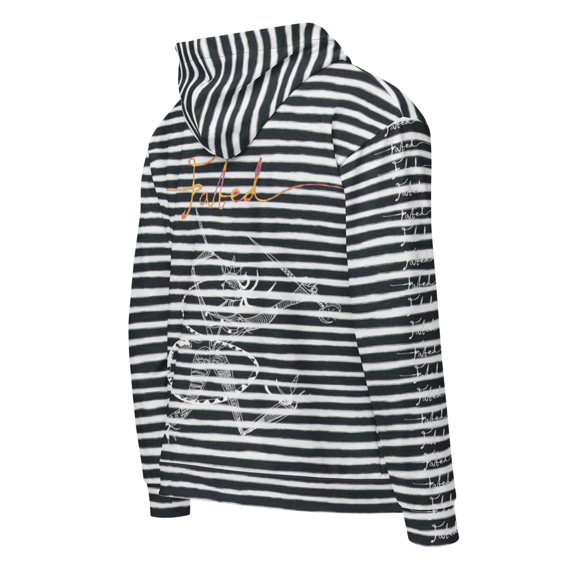 Meet the Fated BlackStripeWarrior zip Hoodie —Crafted from 95% recycled polyester, it combines sustainability with style. Soft both inside and out, this unisex hoodie offers a relaxed fit with drop shoulders. Plus, it’s designed to last and keeping you cozy.